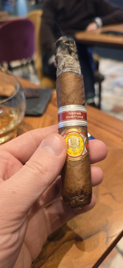 C’è poi un elemento che spesso rende memorabile una fumata: il contesto. L’occasione. Questo sigaro arriva da un incontro con Fabio, il “baffo magico”, che me lo ha affidato come si farebbe con un piccolo tesoro. Un pezzo raro, con qualche anno sulle spalle — e si sente. L’affinamento regala una fumata armoniosa, equilibrata, priva di spigoli o asperità.
