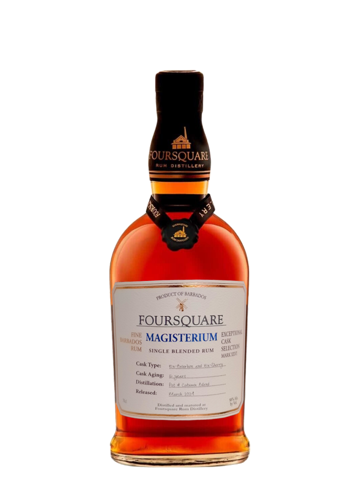 Foursquare Magisterium è la ventiseiesima release della prestigiosa serie Exceptional Cask Selection. Questo Single Blended Rum di Barbados è invecchiato per 16 anni in botti ex-Bourbon ed ex-Sherry. Imbottigliato al 58% vol., senza filtrazione a freddo né additivi, offre un’esperienza morbida, complessa e profonda, con note di caramello, cioccolato, frutta secca e spezie. Un capolavoro di equilibrio e persistenza.