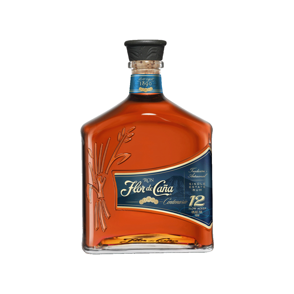 Flor de Caña Centenario 12yo viene Invecchiato 12 anni ai tropici in modo naturale al 100%. Si utilizzano botti premium di ex bourbon da 135 lt sigillate con foglie di platano locale essiccato. È un rum privo di zucchero, caramello, ingredienti artificiali e acceleranti. Primo nel passaggio alla categoria degli Ultra-Premium del portfolio, viene distillato con metodo continuo a multicolonna, secondo tradizione spagnola, sino a 5 volte, con il 100% di energia rinnovabile. Tutte le fasi del processo di produzione sono supervisionate dalla stessa famiglia dal 1890. Si parla di “Autenticità a 5 stelle”.